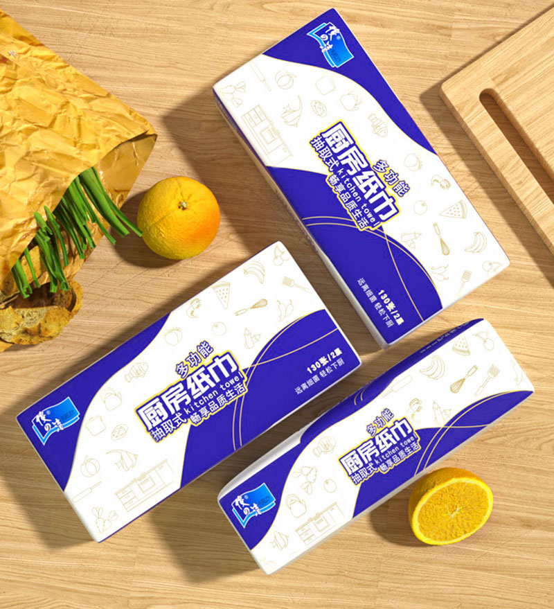 V-Fold Mix Pulp Kitchen Towel is folded by the machine and sealed with plastic film packaging. It‘s packaged the same way as facial tissue. And it absorbs water and oil as well as roll kitchen towel.